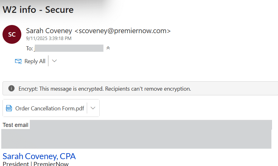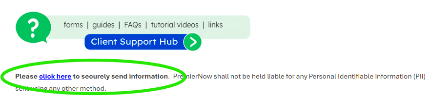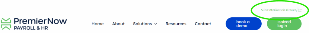 A link to securely send us information through MyFileGuardian can be found on our website, in isolved under ANNOUNCEMENTS, and in every email from an employee at PremierNow.