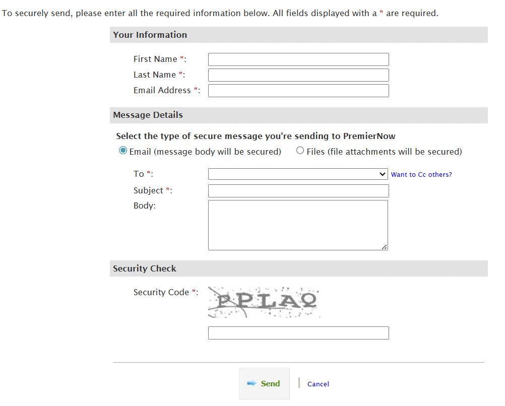 PremierNow shall not be held liable for any Personal Identifiable Information (PII) not sent to us securely