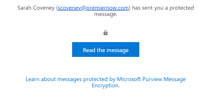 The body of the email will say that you are being sent a protected message. Click READ THE MESSAGE.